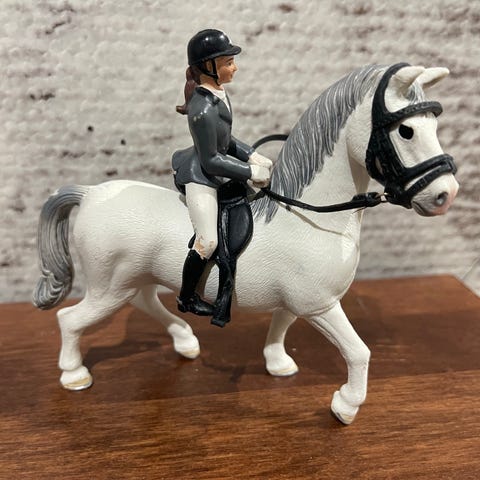 Erittäin siististi pidetty. Kuluu telineeseen, jossa kouluhevonen kiinteillä varusteilla. Heppa on myyty aiemmin.