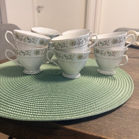 Lautanen ja 6 kpl kahvikupit