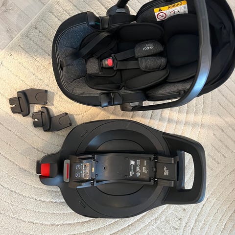 Käytössä heinäkuusta 2025 alkaen (ostettu keväällä 2025) kolaroimattomia. Telakka kääntyy 360° ja näppärä laittaa vauva kyytiin. Isofix kiinnitys. Hyväkuntoisia molemmat. Turvakaukalon voi laskea makuuasentoon. Värinä tumma harmaa. Meillä ollu käytössä adapterien kanssa Ora vaunuissa (adaptereita ei tule mukana). Myydään vain pakettina. Nouto tai omien menojen mukaan Kuusamo/Oulu. Koiratalous.