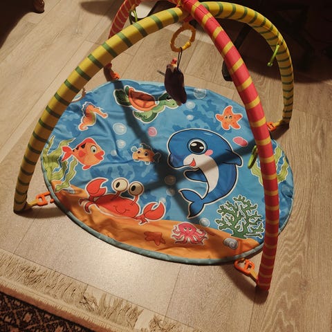 Hyväkuntoinen vauvan leikkimatto, kaikki osat löytyy ja ovat kunnossa. Vain nouto. Koiratalous.