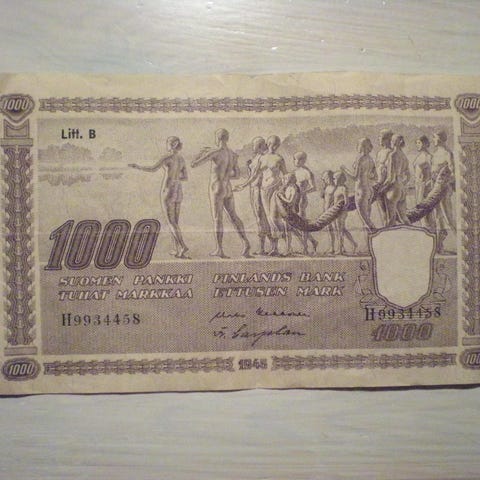 Hyväkuntoinen 500 mk myytävänä, postimaksu 3 euroa.