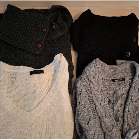 Myydään 5 kpl naisten neuleita. Osaa käytetty enemmän ja osa ollut vähemmällä käytöllä, mutta kaikki ehjiä ja menevät vielä hyvin seuraavalle.