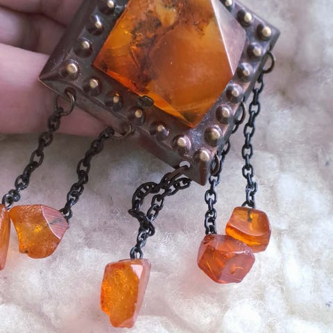 Myynnissä kaunis rintakoru aidoista meripihkasta valmistettu: