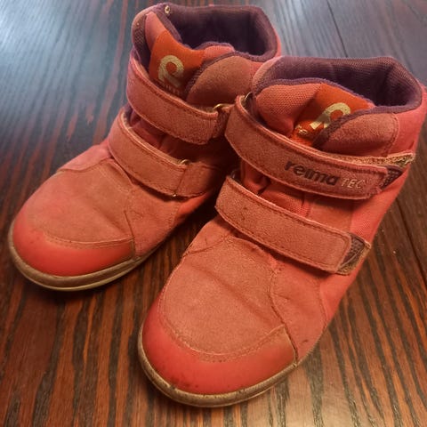 Yhden lapsen käyttämät välikausikengät. Kärjissä hiukan kulumaa, muuten hyväkuntoiset ja edelleen vedenpitävät.