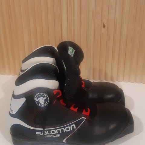 Hyväkuntoiset Salomon Equipe Jr perinteisen hiihdon hiihtomonot. Monoissa on nauhakiinnitys, jonka päällä vetoketjullinen suoja.