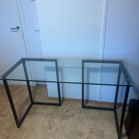 Ikean lasinen kirjoituspöytä. Hyvässä kunnossa. Myydään muuton tieltä pois. Saa purettua, mutta kokousohjeita ei ole. VAIN NOUTO.