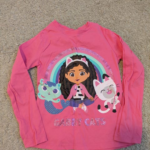 Hyvää kuntoinen t-paita Gabby nukketalo koko 128, mutta sanoisin enemmän koko 122.