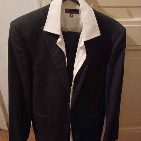 Harmaa Zaran puku miehille. Takin koko 46, housut 44. Päällisin puolin siisti, mutta voi olla jotain purkautuneita lankoja, tummentumaa, jne. Napit kaikki tallella.