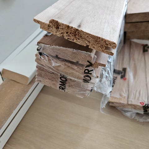 Pieni erä saunapanelia ( käy seinään muuallekin). Paneelia on 2 kpl 5 laudan pakettia ( yht 4 m2) + 2 lautaa yht n 4,5 m2.