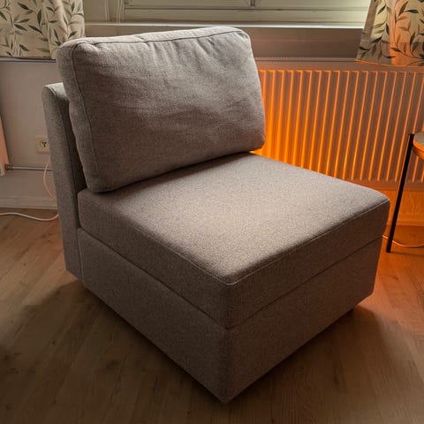 Myynnissä hyväkuntoinen tummanharmaa nojatuoli. Ostettu Jyskistä. Nojatuolin saa myös levitettyä makuuasentoon.