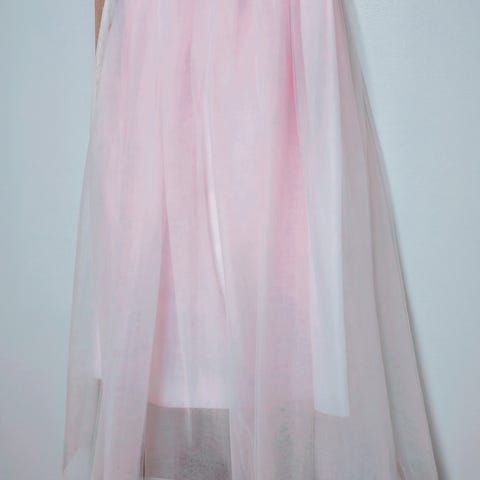 Naisten vaaleanpunainen tyllihame koossa S/M Hame on pitkä 80 cm pitkä, ja kaksikerroksinen jossa on joustava kuminauhavyötärö. Sopii käytettäväksi esimerkiksi arki- ja juhla-asujen kanssa erilaisten yläosien ja kenkien kanssa yhdisteltynä.