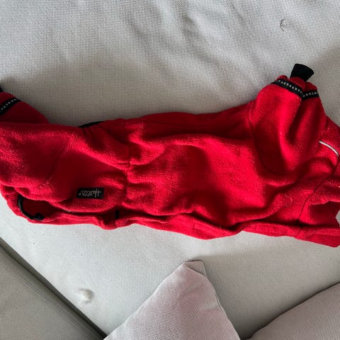 Hurtta koiran fleecehaalari, koko 28. Punainen haalari, jossa vetoketju selässä ja heijastintereet. Pehmeä fleecevuori ja resorit lahkeensuissa. Soveltuu koiralle lämmittäväksi ulkoiluvaatteeksi viileään säähän.