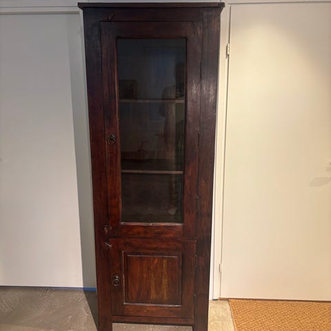 Hyvässä kunnossa 2 pitkää lasikaappia ja 3laatikko-osaa. Pienempi lasilaatikko ja sen viereinen hyllylaatikko eivät ole yhdessä vaan saa yksittäin jos haluaa. Kaksi ovinen puu kaappi on erikseen eikä kiinni muissa. Pitkissä salikaapeissa on lapmut jotka toimivat hyvin takaata löytyy johto niihin.