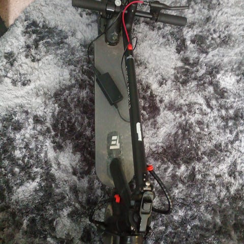E-Wheels E2S V2 sähköpotkulauta. Malli on taittuvarunkoinen ja varustettu etu- ja takapyörällä, seisontajalalla sekä sähkömoottorilla. Rungon pääväri on musta, yksityiskohtina punaisia tehosteita. Soveltuu lyhyisiin matkoihin ja arkiliikkumiseen kaupunkiympäristössä. Viime loppukesästä vaihdettu takajarrusylinteri ja palat. Sekä etu ja takarenkaat.