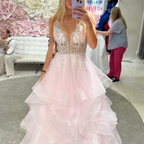 Hameosa on monikerroksinen ja laskeutuva. Materiaalina silkkisatiini. Soveltuu esimerkiksi juhliin, iltapuvuksi, vanhojentansseihin ja muihin pukeutumista vaativiin tilaisuuksiin. Mekko on erinomaisessa kunnossa (kuvassa näkyy helmassa oleva yksi harson purkauma, joka ei näy käytössä). Käytetty kerran vanhojentansseissa.