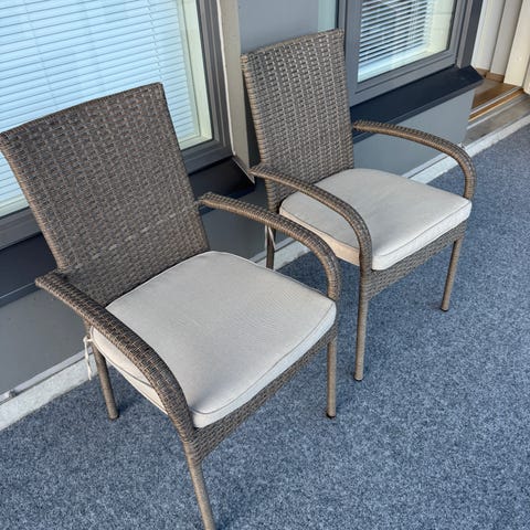 Myydään hyvässä/kohtalaisessa kunnossa olevat polyrottinkiterassikalusteet. Pöytä ja kaksi tuolia. Pöydässä lasikansi.