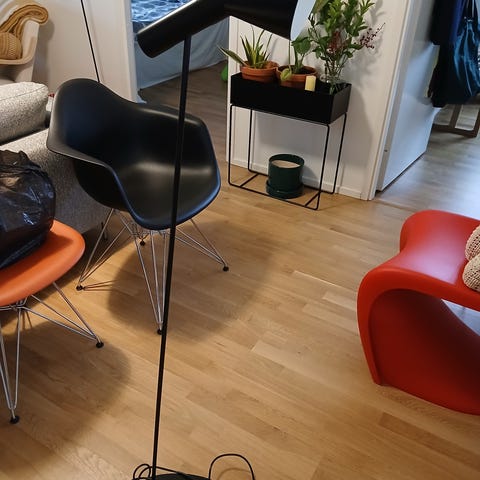 Arne Jakobsen AJ Poulsenin ikoninen lattiavalaisin. Väri musta.