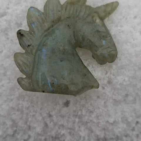 Mansikkakvartsista veistetty lohikäärmettä esittävä figuuri.