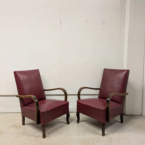 Hienot 40-luvun luvun kerni-nojatuolit etsivät uutta kotia. Nahat erittäin hyvässä kunnossa ikäisekseen. Ei rikkoja. Puuosissa ajan tuomaa patinaa. Rungot ja istuimet kunnossa. Myydään parina.