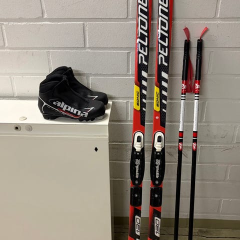 Sukset 120 cm Fischer Viper nnn - profiilin siteellä, sauvat One Way 95 cm. Monot Fischer Snowstar 32 nnn. Monoiksi voi vaihtoehtoisesti ottaa koon 30 / 31 tai 33 monot.