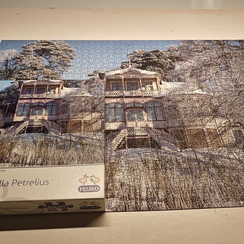 Myydään kaksi 1000:n palan Peliko-palapeliä. Kerran koottu, ehjä, kaikki palat tallella, uuden veroiset. Koot 68 cm x 48 cm. Kummankin laatikon koko 27 cm x 27 cm x 5 cm. Yhteishinta 6 €.