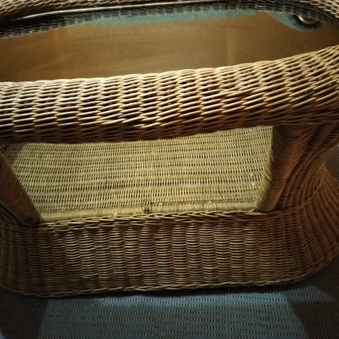 Englantilainen, aluperäisessä kuosissa oleva siro sohva. Mitat: istumakork. 44 cm, istumasyv. 58 cm, etulev. 129 cm, takalev. 143 cm, selkänojan kork. 50 cm. Etujaloissa rullat.