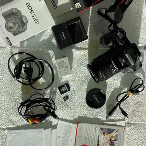 Canon EOS 550D järjestelmäkamera. Mukana kaksi objektiivia: Canon EF-S 18–55 mm f/3.5–5.6 IS -zoomobjektiivi sekä Tamron 18–270 mm f/3.5–6.3 Di II VC PZD -zoomobjektiivi. Varusteina kamerahihna, kamerareppu, ulkoinen salama, laturi, johdot, linssisuojat, puhallin ja muuta pientä tarviketta. Kokonaisuus soveltuu yleiskuvaukseen, maisema- ja matkakuvaukseen sekä pidemmän polttovälin ansiosta myös kauempana olevien kohteiden kuvaamiseen.