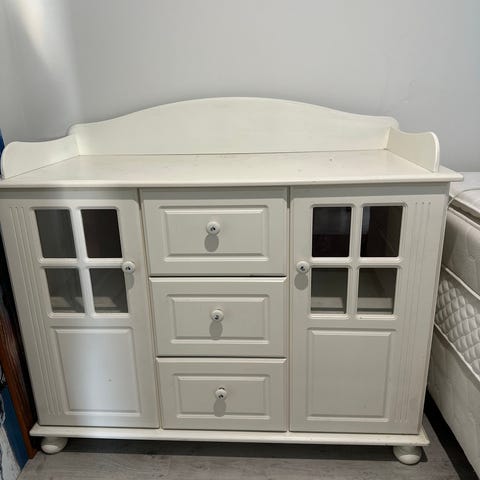 Myydään iso lipasto. Tehty mittatilaustöinä. Ylimmäisen laadikkon muovipinta jouduttu vaihtamaan, koska lapset sitä intisöivät omalle maulle :)