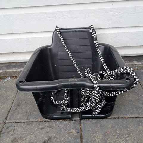 Plaston keinu vauvalle. Mukaan saa halutessaan jatkoköyden. Käytetty vain lasitetulla parvekkeella, joten kunto hyvä.