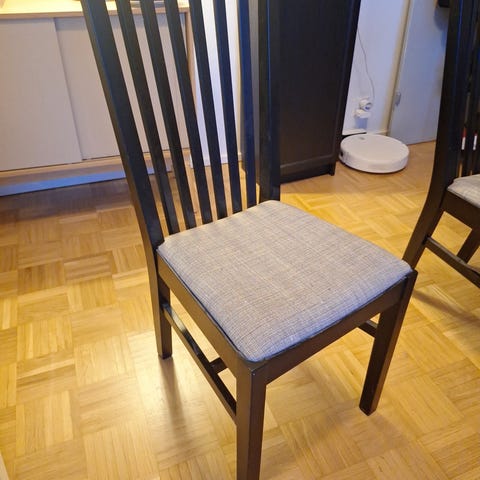 Nämä ovat tukevia istua ja sopivat loistavasti yhteen esimerkiksi juuri myynnissä olevan vaalean pöydän kanssa. Myydään mielellään koko setti kerralla.