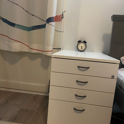 Hyvin siistikuntoinen pieni lipasto pyörillä. Valkoinen. Ikeasta ostettu vuosi sitten. Laatikosto toimii hyvin.