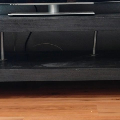 Ikean musta TV-taso hyvässä kunnossa. Pinnassa pieniä käytön jälkiä (katso kuvat).