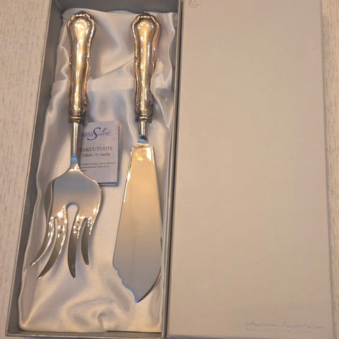 Kodin Onni kakkulapio ja kakkulasta hopeaa toinen nimikirjaimella