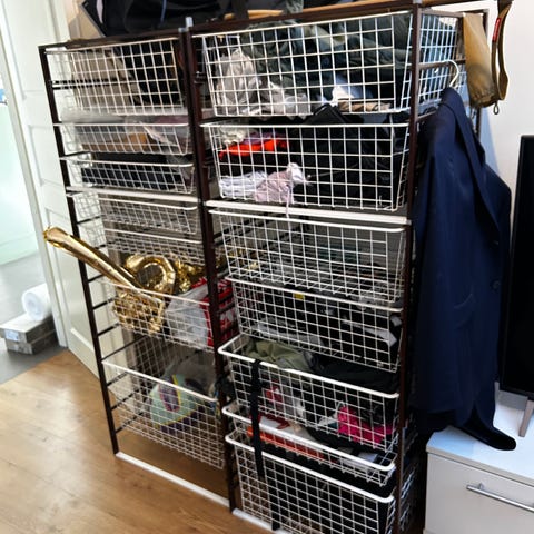 k74, l45, s53,5cm. Kolme koria 18cm korkeat, yksi 8,5cm.