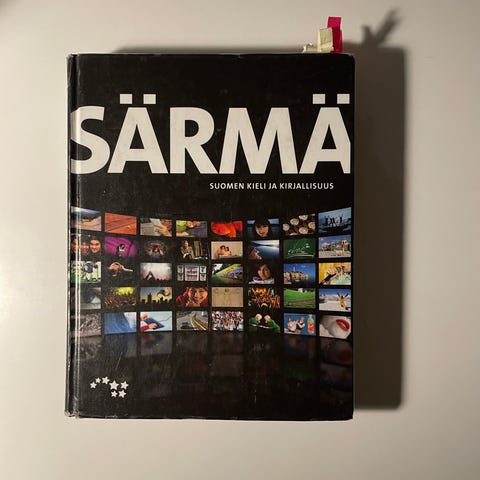 Särmä suomen kieli ja kirjallisuus -oppikirja. Kirja käsittelee suomen kieltä ja kirjallisuutta, sisältäen teoriaa, esimerkkejä ja harjoituksia. Tarkoitettu äidinkielen ja kirjallisuuden opiskeluun, soveltuu erityisesti toisen asteen opetukseen. Kovat kannet, suomenkielinen teksti.