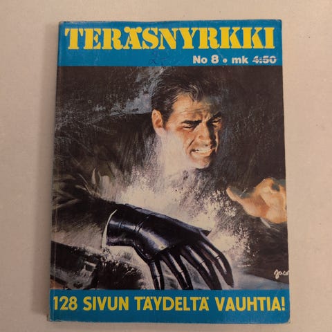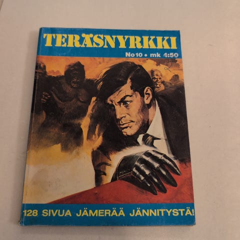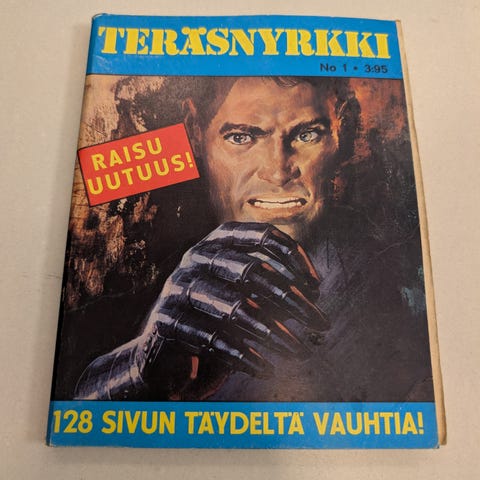 Teräsnyrkki pokkari sarjakuvakirja. Pehmeäkantinen suomenkielinen sarjakuvakirja, jossa on mustavalkoisia sarjakuvia ja mainoksia. Kansi ja selkä sinisävyiset värikuvituksella. Soveltuu luettavaksi ja kokoelmakäyttöön sarjakuvien ja taskukirjojen harrastajille.