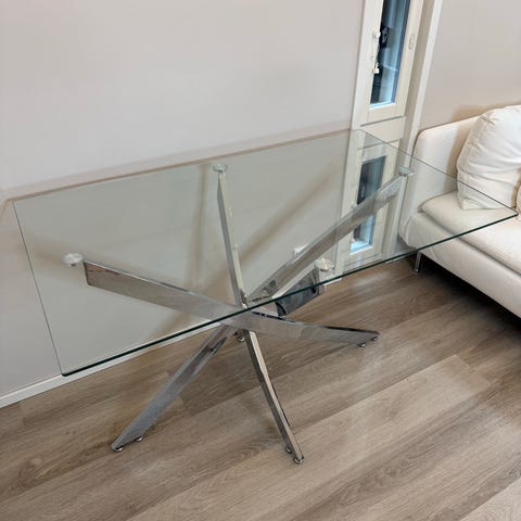Myydään muuton tieltä alle vuoden vanha lasinen ruokapöytä, pöytä on erittäin hyvässä kunnossa, pöydän päällä on pidetty vahakangasta lähes koko ajan. VAIN NOUTO!