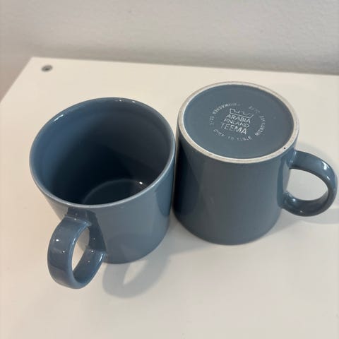Iittala mukit, punainen keramiikka. Kolme samanlaista mukia.