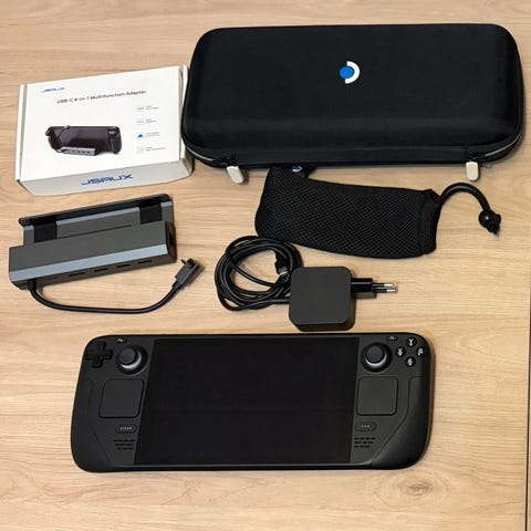 Myynnissä vähän käytetty ja erittäin hyväkuntoinen Steam Deck LCD paneelilla, kookkaalla muistikortilla ja telakalla.