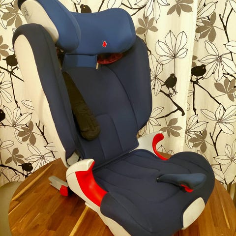 Turvaistuin: Britax Römer KIDFIX XP-SICT, ryhmä 2 ja 3, 15-36 kg (noin 4...11-vuotiaille), ISOFIX-kiinnitysjärjestelmä. Väri: Viileä marja.