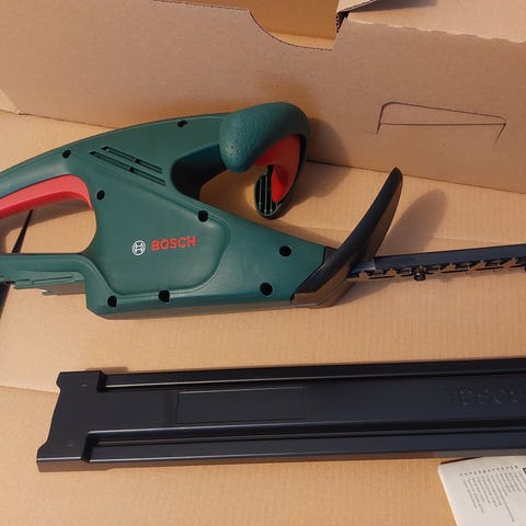 Bosch teleskooppivarsi akkupensasleikkuri.