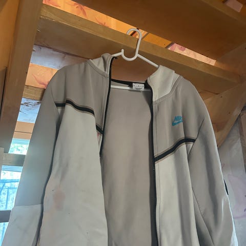 Lähes käyttämätön urheilutakki/huppari, jossa vetoketjukiinnitys edessä ja taskut sivuilla sekä lisäksi vetoketjut sivuilla, joilla takin helman voi aukaista. Dri-Fit -materiaali on suunniteltu siirtämään kosteutta iholta. Sopii urheiluun ja muuhun vapaa-aikaan.