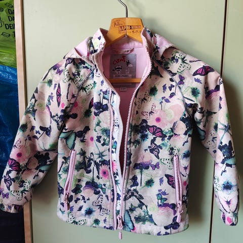 Tosi kiva malli, helppo pukea, takissa on irrotettava huppu ja sivuilla kaksi vetoketjullista taskua. Kuminauhakiristykset hihansuissa ja heijastavia elementtejä