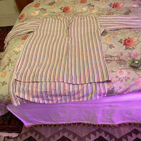 Paidan edessä painatus "Tätä maata ei osteta eikä vuokrata". Valmistettu 100 % puuvillasta. Lyhythihainen malli, perinteinen pyöreä pääntie. Kai-kai mitta 60 cm ja pituus 70 cm.