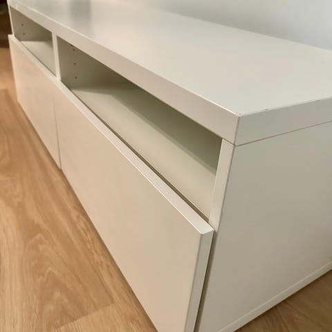 Selling IKEA BESTÅ TV bench with drawers. Bought in July 2023. Dimensions (W × D × H): 120 × 39,5 × 39 cm.