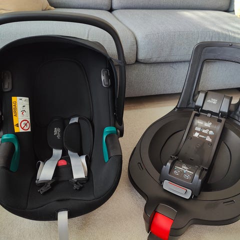 Turvakaukalo ja isofix kiinnitteinen telakka. Valmistettu 5/2020, joten käyttöaikaa vielä tovi olisi. Kaukalon saa myös vöillä kiinni.