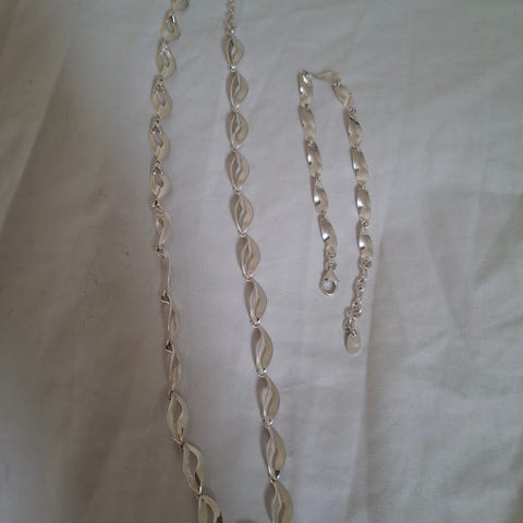 Hopeinen kaula- ja ranneketju-setti
