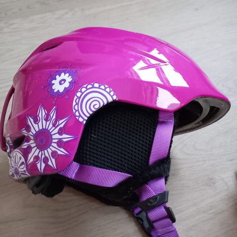 Giro lasten pyöräilykypärä sininen. Kypärässä on useita ilmanvaihtoaukkoja ja säädettävä leukahihna istuvuuden säätämiseen. Sopii pyöräilyyn ja lasketteluun. Kypärän päällä on irrotettavat vihreät pehmoiset koristeet.