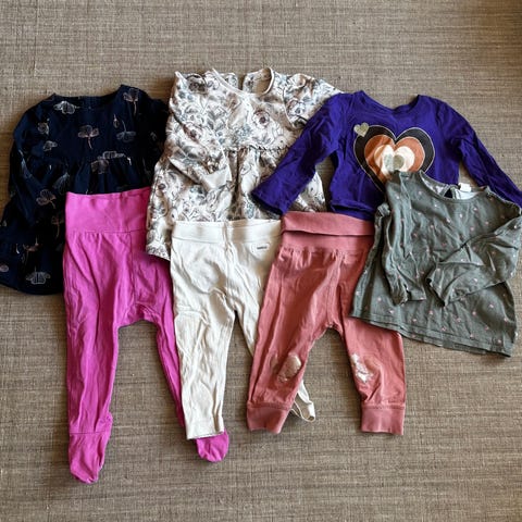 Ihana pienen tytön kesäinen vaatepaketti. Vaatteet ovat erittäin hyväkuntoisia, ainoa miinus on, että farkkujen nauhoissa on pesunukkaa.