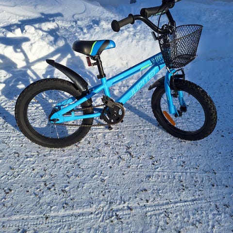 White lasten polkupyörä 12" renkailla. Polkupyörässä on apupyörät, etukori ja käsijarru. Soveltuu pienelle lapselle ensimmäiseksi polkupyöräksi, kun käytössä ovat vielä apupyörät. Väritys sinisen, valkoisen ja pinkin sävyissä. Työntötanko ei kuulu kauppaan.